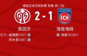 北京时间1月14日,2023-2024赛季德国足球甲级联赛第17轮,美因茨主场迎战海登海姆。比赛中,...