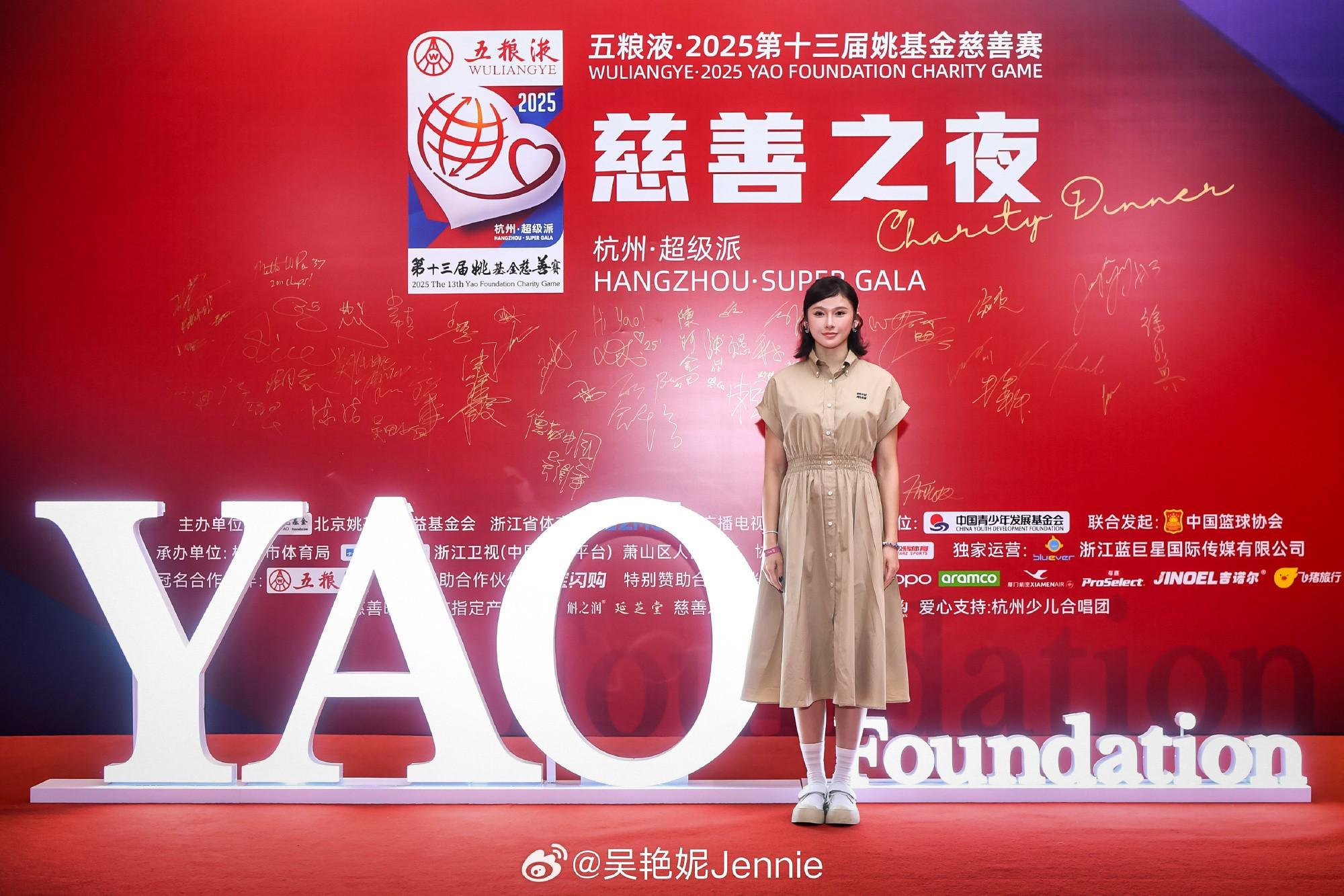 中国田径名将吴艳妮作为嘉宾,赛后她在社媒晒出了和姚明、杰伦-布朗、库兹马、喻言、邓超等人的合影,并写道:“助力姚基金晚宴和慈善赛,非常高兴为我们体育界的慈善事业出一份力,也见到了很多前辈和好朋友。”
